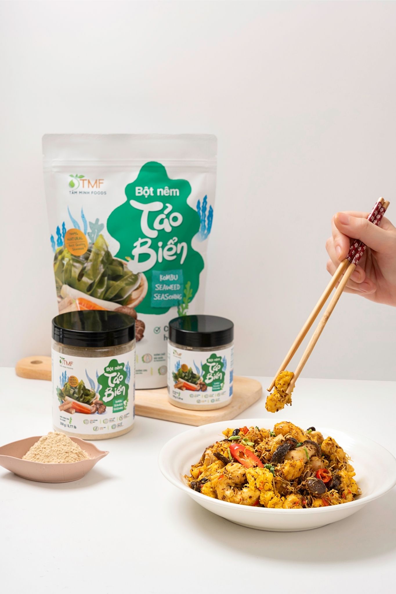 Seaweed Seasoning Powder contains 20% seaweed, providing a rich source of iodine, calcium, and magnesium for the body. The product does not use MSG or refined sugar. Instead, with the combination of miso and wheat germ along with burdock root, it creates a naturally mild and refreshing sweetness, helping to balance nutrition and enhance the flavor of dishes.